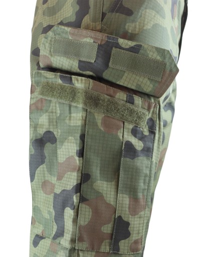 Oryginalny Mundur letni wojska polskiego w wzorze 123 UL/MON składający się z bluzy, spodni, ochraniaczy, paska oraz flag.