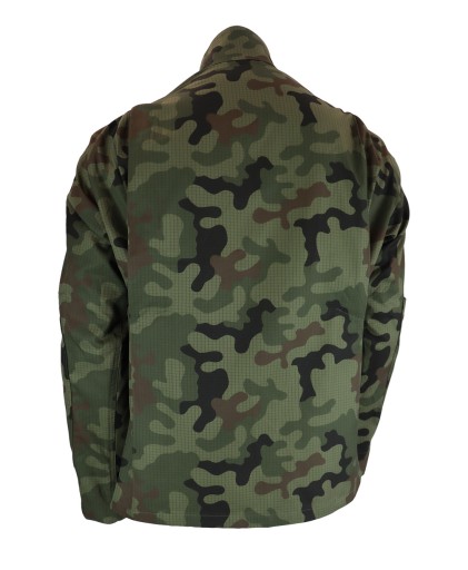 Bluza zapinana jest na guziki, które dodatkowo zostały zabezpieczone listwą przykrywającą. Posiada również miejsce na dystynkcje na rękawach i klatce piersiowej oraz flagi. Wysoki kołnierz zapinany jest na rzep, chroniąc nawet w najmniej sprzyjających warunkach atmosferycznych. Na plecach zastosowano zaszewki zwiększające zakres oraz swobodę ruchu.