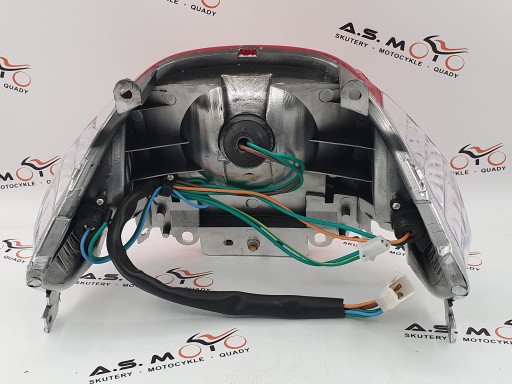 Lampa tył z białymi kloszami kierunkowskazów występująca w małych skuterach na kołach 10" calowych takich jak: QUEST, WILGA, VAPOR.