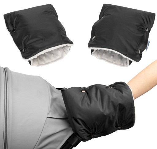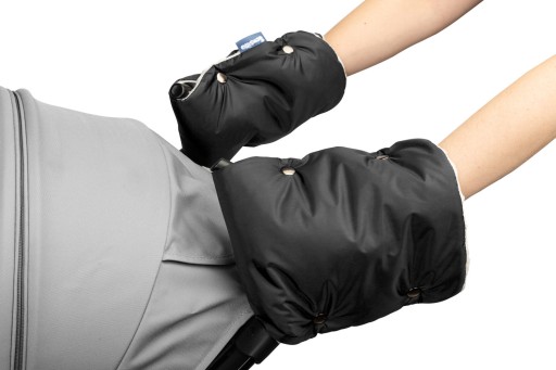 Rękawiczka/mufka do wózka poprawia komfort spaceru w niekorzystnych warunkach atmosferycznych. Chroni dłonie i ułatwia opiekę nad maleństwem. Rękawiczki/mufki nie są ze sobą połączone, dzięki temu można je stosować również wózkach z rozdzieloną rączką. Jest zapinana napami, na rączkach wózka lub sanek, i dlatego utrzymuje dobrze swoje położenie.