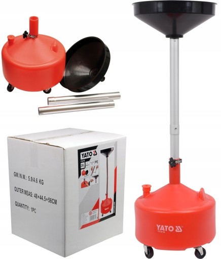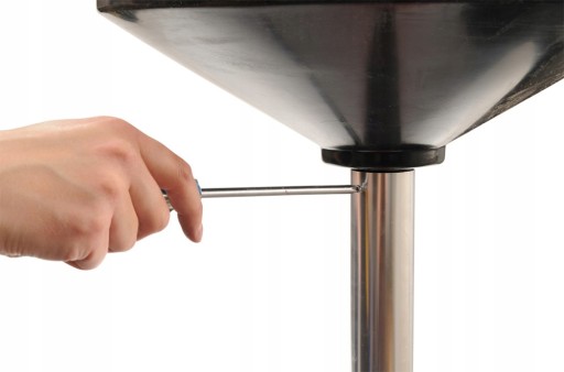 Posiada szeroką miskę spustową o średnicy 420 mm zakończoną kratką zabezpieczającą, która ułatwia zlewanie oleju, a także 20-litrowy zbiornik, który dodatkowo wyposażony jest w kółka skrętne ułatwiające przemieszczanie zlewarki w miejscu pracy. Dzięki zastosowaniu rury stalowej produkt ten ma możliwość regulacji wysokości pracy w zakresie od 750 mm do1550 mm.
