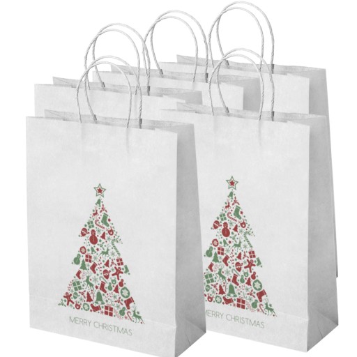 ❄️ Oferta dotyczy zestawu 5 toreb z kolorowym nadrukiem Choinki i napisem MERRY CHRISTMAS. ❄️
