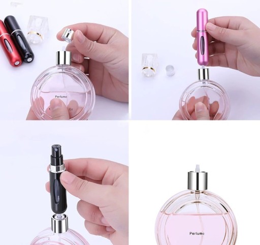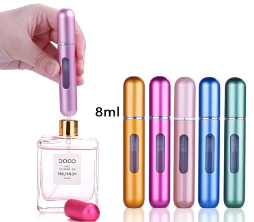 Przenośny , podróżny pojemnik z atomizerem do perfum o pojemności 8ml.