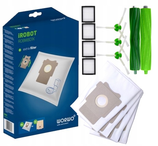 Zestaw akcesoriów oraz worków przeznaczony do odkurzaczy iRobot Roomba.
