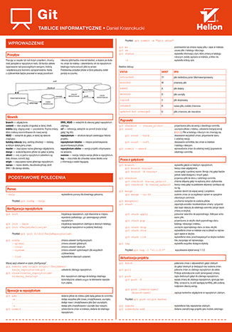 Tablice informatyczne powinieneś mieć pod ręką zawsze wtedy, gdy pracujesz z wykorzystaniem Gita. Szybko znajdziesz w nich wszystko, co będzie Ci aktualnie potrzebne. Polecenia podzielono tu na podstawowe i zaawansowane, a oprócz tego uporządkowano je tematycznie. Zobaczysz, jak praca z tablicami usprawni i ułatwi Ci poruszanie się po całym projekcie i przyspieszy jego tworzenie. Weź je do ręki i zacznij działać!