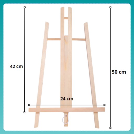 1️⃣ Sztaluga malarska drewniana 50 cm – lekka, solidna, idealna do malowania przy stole lub jako ekspozytor.