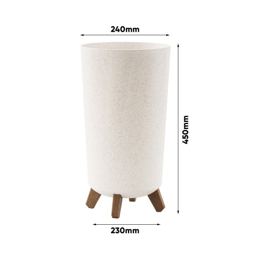 Doniczki wyposażone zostały w 4 wpinane nóżki wdzięcznie imitujące wykonanie z drewna.