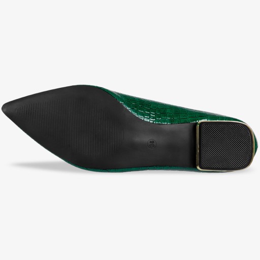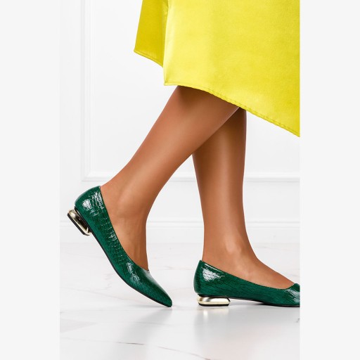 Zielone baleriny lakierowane na niskim ozdobnym obcasie ze skórzaną wkładką wzór wężowy Casu ER22WX1-G