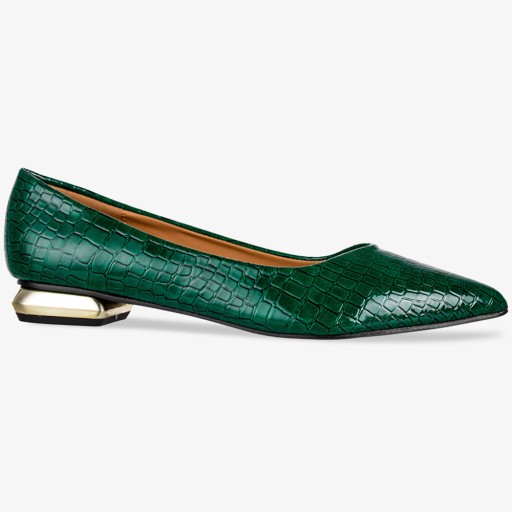 Zielone baleriny lakierowane na niskim ozdobnym obcasie ze skórzaną wkładką wzór wężowy Casu ER22WX1-G