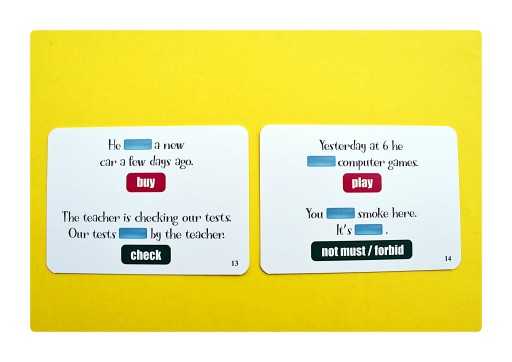 Karty zostały stworzone do powtórek przed egzaminem maturalnym. W zestawie znajduje się 150 dwustronnych kart (3 talie po 50 kart). Na odwrocie znajdują się odpowiedzi do zadań. Zadania podzielone są na 3 kategorie grammar, vocabulary i gap-fill.