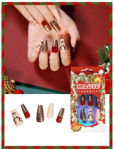 PAZNOKCIE SZTUCZNE TIPSY WZORY ŚWIĄTECZNE 24 SZT