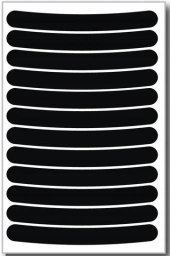 Jeden arkusz 12 naklejek wystarcza na jedno koło (po 6 naklejek na każdą stronę) lub dwa koła (po 3 szt. na każde koło z dwóch stron).