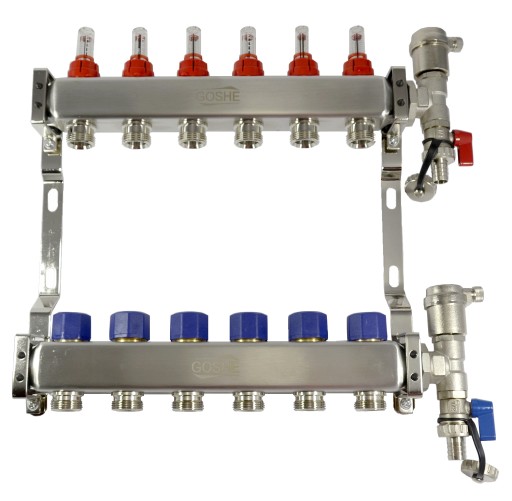 Znakomity rozdzielacz ze stali nierdzewnej Firmy Goshe do podłogówki 6 obwodów