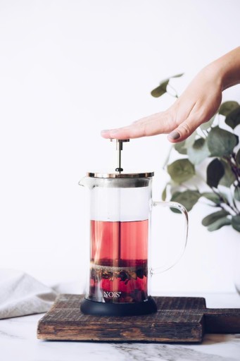 Zaparzacz firmy "NOIS" to doskonałe rozwiązanie na jesienne i zimowe wieczory. Przeznaczony jest do zaparzania herbaty, kawy ale i innych napojów ziołowych. Wykonany został z najwyższej jakości szkła, które jest odporne na wysokie temperatury. Szkło o podwójnych ściankach dłużej utrzymuje napój ciepły, a zewnętrzna ścianka i tak jest chłodna. Szklany zaparzacz wyposażony jest w metalową pokrywkę, a stalowy tłok zapobiega przedostawaniu się fusów do herbaty. Idealny do codziennego użytku oraz jako prezent.
