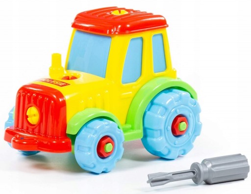 Z pomocą klocków "TRAKTOR" dziecko nie tylko poznaje świat transportu, ale także uczy się samodzielnie składać i rozkładać zabawkę. W tym celu do zestawu dołączono specjalny śrubokręt.