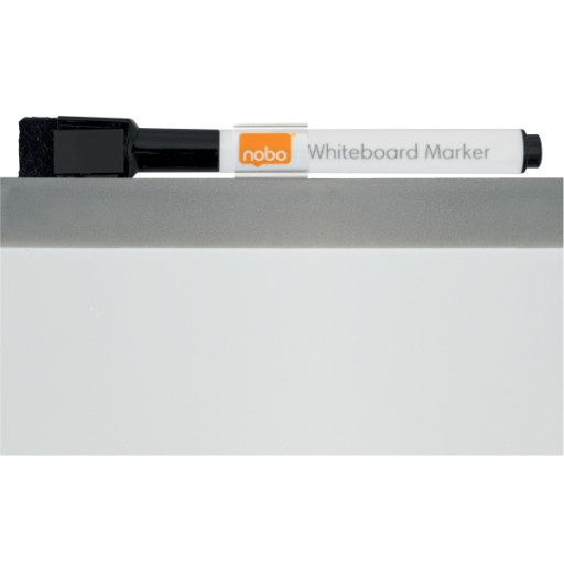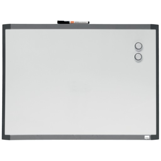 Funkcjonalna i elegancka tablica Nobo z magnetyczną powierzchnią suchościeralną.