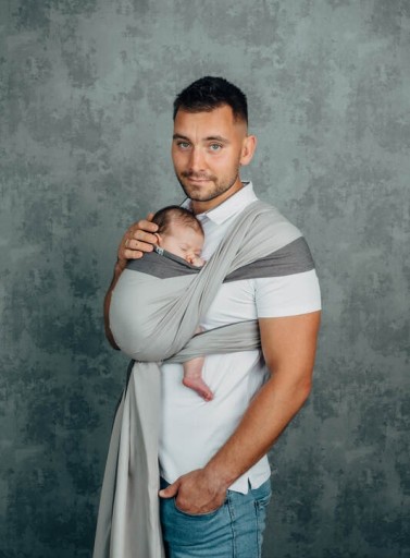 Wystarczy tylko odpowiednio dopasować wiązania. Pasuje na każdego rodzica, a wiązanie chusty to nic trudnego - do każdej nosidełka dla niemowlaka dołączamy instrukcję! Chusta to obecnie must have wyprawki noworodka.