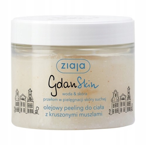 Peeling GdanSkin w postaci gęstej olejowej pasty. Zawiera naturalne, kruszone muszle św. Jakuba. Oparty na nawadniającej mocy kocanki nadmorskiej i szanty zwyczajnej oraz biofermentu z cynku, krzemu, magnezu, miedzi i żelaza. Perfumowany zapachem inspirowanym naturą morza i skalistą roślinnością.
