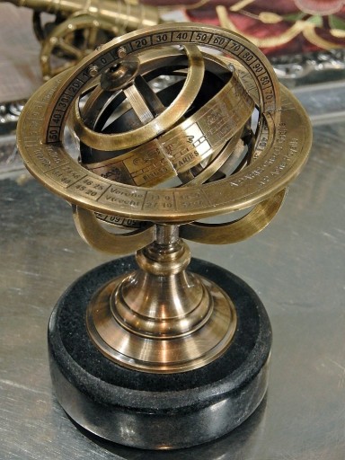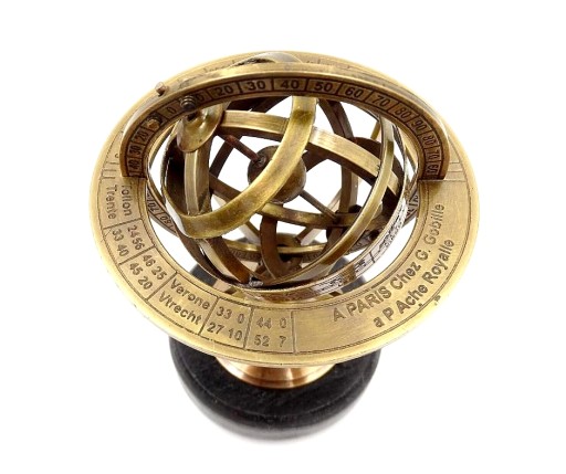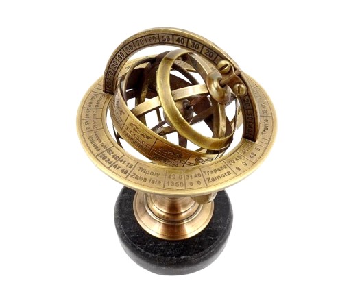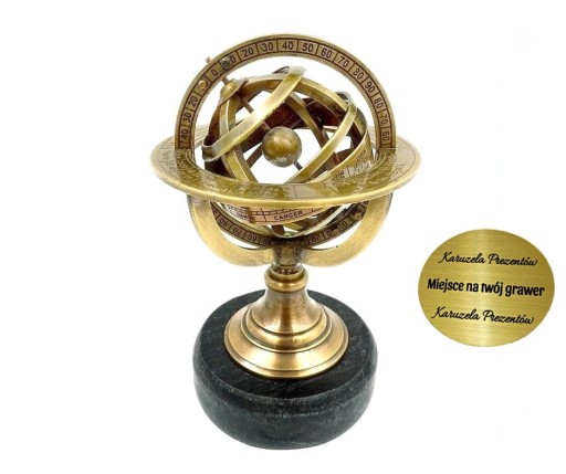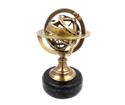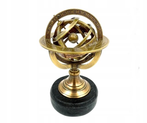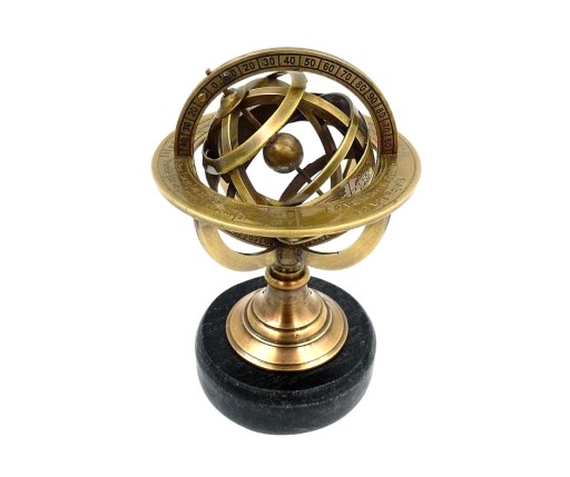 Zapraszam do zakupu pięknego astrolabium pierścieniowego na podstawie z czarnego kamienia. Wykonane z mosiądzu.