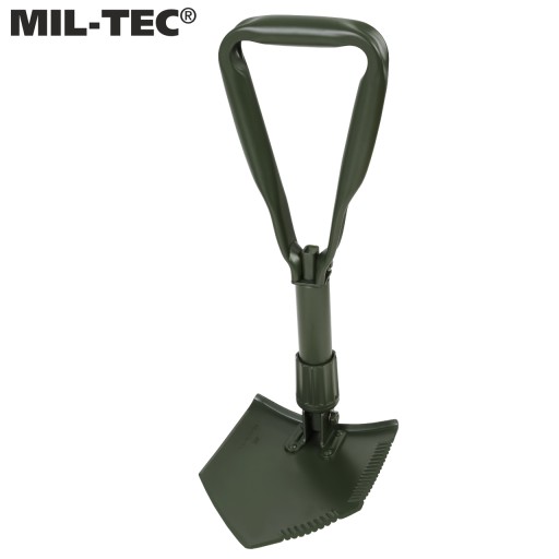 Niezawodna łopatka wojskowa, wzór US zaadoptowany przez niemiecką BUNDESWEHR. Nowa, stan fabryczny. Wykonana w całości z metalu, bardzo precyzyjnie i solidnie. Lekka, poręczna i kompaktowa po złożeniu. Znajdzie szerokie zastosowanie praktyczne nie tylko na poligonie ale także w przydomowym ogródku, niezwykle przydatna w samochodzie. Uniwersalna, poza klasyczną funkcją łopatki - po rozłożeniu do połowy spełnia także rolę kopaczki, haczki lub kilofa (do kopania w gliniastej lub zmrożonej glebie). Możliwość piłowania korzeni, krzaków lub lodu za pomocą dwóch krawędzi z zębami falistymi - bardzo odpornymi na tępienie. Przeciwległe krawędzie naostrzone, możliwość wykorzystania jako toporek. Naostrzenie i kształt szpicy ułatwia kopanie np. w trawiastym podłożu. System składania na trzy części do niewielkich wymiarów, saperka składa się do wielkości głowni (części kopiącej). Część robocza wykonana z wysokogatunkowej stali, wyprofilowany kształt zwiększa wytrzymałość mechaniczną. Pokryta farbą w kolorze maskującym która dodatkowo zabezpiecza przed korozją. Górne krawędzie szpadla zagięte, umożliwia to wbijanie łopatki butem i kopanie w twardym podłożu. Składana rękojeść i stylisko wykonane z lekkiego a zarazem wytrzymałego aluminium. Blokada wyposażona w sprężynę dociskową. Wyprofilowana, lekka rękojeść znacznie ułatwia pracę. Łączenia elementów stanowią solidne nity i śruby samokontrujące (brak luzów). Pokrycie farbą w kolorze maskującym która dodatkowo zabezpiecza przed korozją. W komplecie nowy futerał firmy TSR wykonany z elastycznego tworzywa. Pokrowiec wyposażony w system LC2 - możliwość montowania do pasa lub oporządzenia. Zamykany na solidne nierdzewne napy, otwory do oprowadzania wody z wnętrza pokrowca w wypadku zalania.