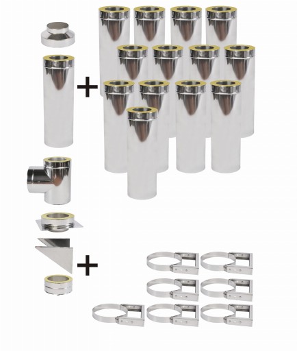 Komin zewnętrzny, izolowany (30 mm), wiszący, paliwa stałe.