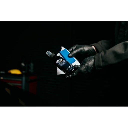 - Gdy już mamy przygotowaną szybę możemy rozpocząć aplikację K2 Vizio Pro w tym celu nawijamy ściereczkę na aplikator, który znajdziemy w opakowaniu. Wystarczą maksymalnie 2-3 psiknięcia, ponieważ produkt jest bardzo wydajny.