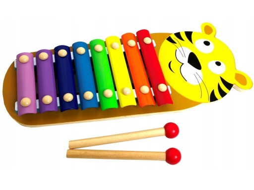 DREWNIANE KOLOROWE CYMBAŁKI TYGRYSEK SMILY PLAY