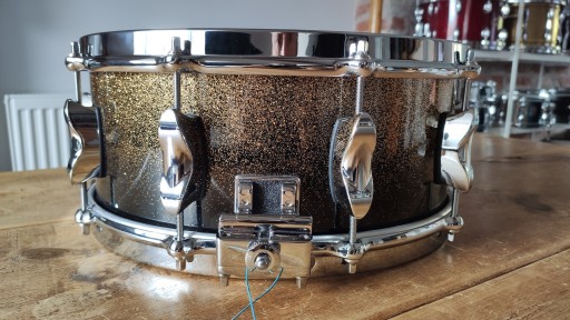 Werbel jest w IDEALNYM stanie, jak nowy, nie posiada żadnych uszkodzeń i jest w pełni sprawny. Piękny werbel, którego korpus wykonany jest z klonu północno amerykańskiego. Grubość korpusu 5,7 mm, 7 warstw klonu, strojony na 10 śrub na stronę, obręcze odlewane. Oryginalne naciągi w idealnym stanie, Rewelacyjny instrument, świetnie wykonany.
