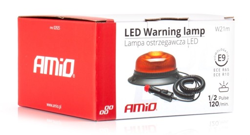 Lampa ostrzegawcza (kogut), w kolorze pomarańczowym wyposażona w 18 diod Led SMD. Lampa posiada odbłyśnik, dzięki któremu światło jest widoczne nawet w słoneczny dzień. Kogut Posiada homologację ECE R65, ECE R10.