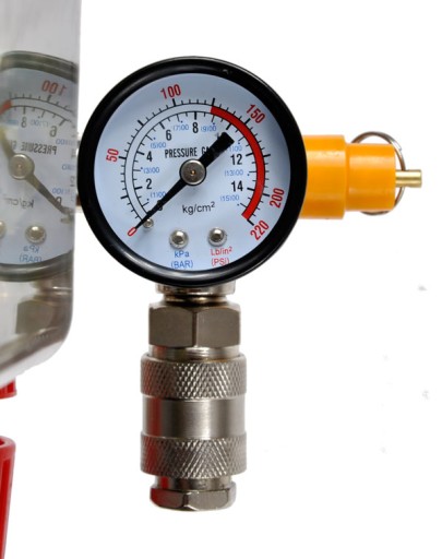 - dwa manometry ze skalą w jednostkach PSI i BAR