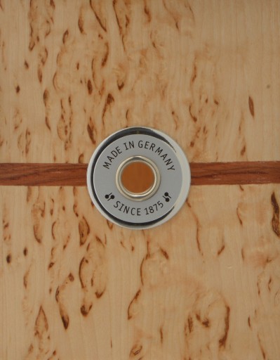 Werbel bukowy z okleiną zewnętrzną brzozy skandynawskiej ma teraz intarsję z drewna Bubinga i