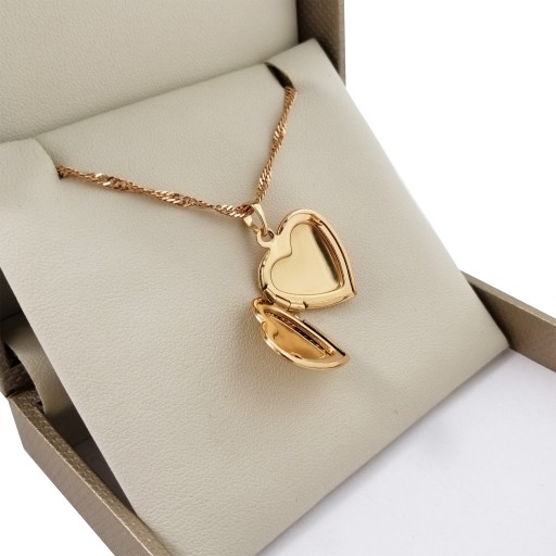 Przedstawiamy państwu delikatny damski naszyjnik z otwieranym sercem. Produkt został wykonany z najwyższej jakości stali chirurgicznej. Całość została pokryta prawdziwym 18 karatowym złotem. W zestawie jest również pisemna gwarancja. Ten model naszyjnika z pewnością doceni każda kobieta. W środku sekretnika jest miejsce na niewielkie zdjęcie.