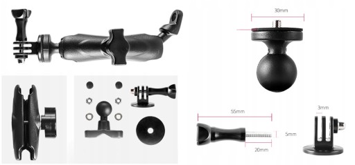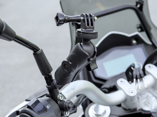 Uchwyt motocyklowy umożliwiają umieszczenie kamery sportowej lub innego sprzętu fotograficznego na lusterku lub śrubie o średnicy 10 mm.