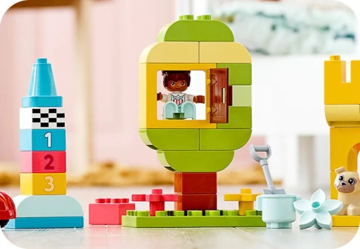Lego Duplo jest z własnym pojemnikiem do przechowywania. Wszystkie elementy wchodzące w skład zestawu można wygodnie schować do pudełka. Dzięki temu klocki są łatwe w utrzymaniu czystości i przechowywaniu!