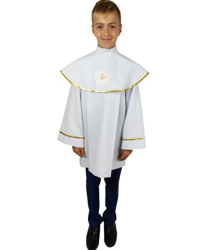 Polecamy albę uszytą z należytą starannością z delikatnej, białej tkaniny. Odpowiednia dla chłopca.