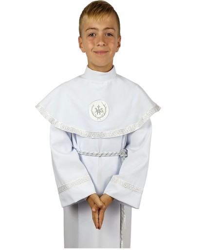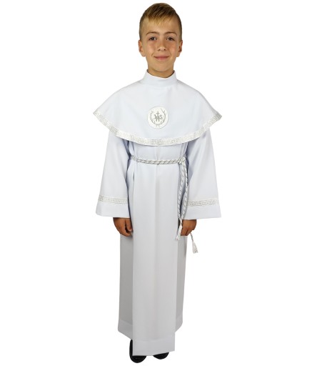 Polecamy albę uszytą z należytą starannością z delikatnej, białej tkaniny. Odpowiednia zarówno dla chłopca, jak i dla dziewczynki.