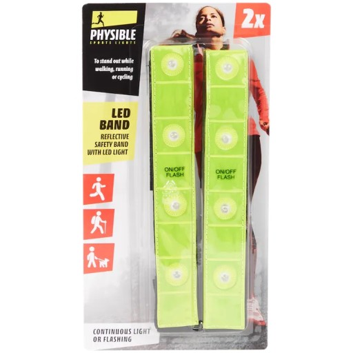 - Opaska została dodatkowy wyposażona w 4 czerwone diody led które zapewniają jeszcze lepszą widoczność w trakcie chodzenia, biegania lub jazdy na rowerze w ciemności.