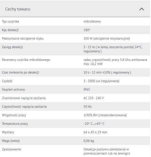 Czujnik ruchu mikrofalowy zewnętrzny IP65