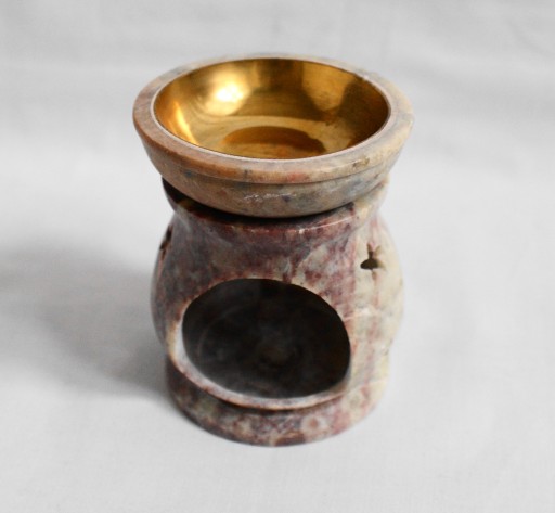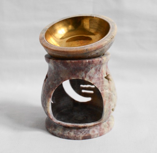 Parowniczka, kominek do olejków, aromatyzer wykonany ręcznie z kamienia mydlanego (steatytu). W kamieniu zostały wyrzeźbione księżyc i gwiazdy.