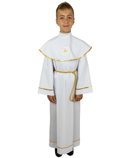 Polecamy albę uszytą z należytą starannością z delikatnej, białej tkaniny. Odpowiednia zarówno dla chłopca, jak i dla dziewczynki.