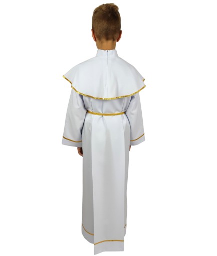 Rękawy i pelerynka obszyte są złotą pasmanterią. Do alby dołączamy dopasowany do obszyć sznur, który podkreśla liturgiczny charakter szaty.