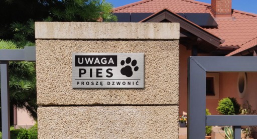 Tabliczka UWAGA PIES PROSZĘ DZWONI. 20x10 cm
