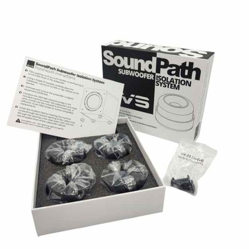W zestawie Soundpath Sub Isolation 4 są 4 nóżki oraz jeden komplet śrub mocujących.