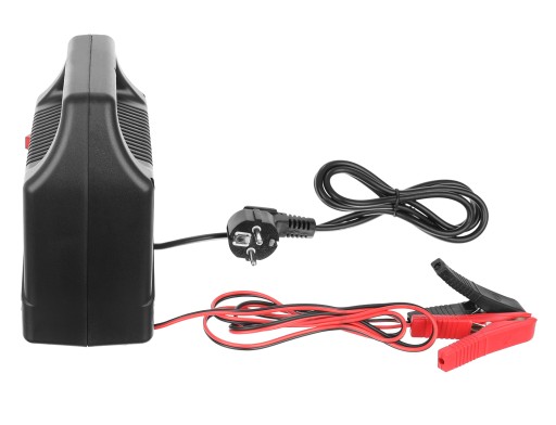 - SPECYFIKAJCA – kolor: czarny; materiał: tworzywo sztuczne; wyjście: AC110V / 230V: DC 12V; moc: 4,2A; maksymalny prąd ładowania: 6A; ładowarka jest na transformatorze; 6 lampek kontrolnych; przewody zasilające (dł): 1,5 m, kabel zasilający urządzenie (dł): 1,5m; wymiary (dł/szer/wys): 8,5/16/18 cm; waga: 1kg; waga w opakowaniu: 1,5 kg