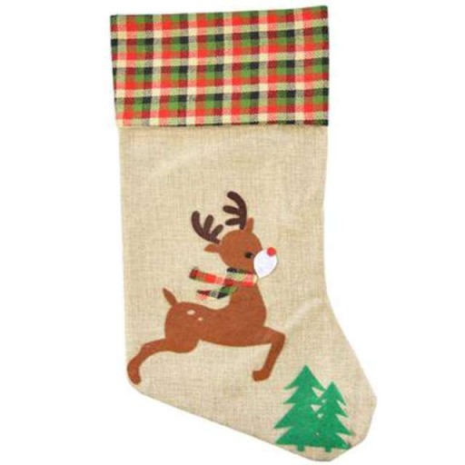Jutowa SKARPETA - idealna na prezenty, upominki, słodycze... lub po prostu jako stylowa dekoracja na Boże Narodzenie. Skarpetka wykonana z juty, zdobiona reniferem. Idealna do zastosowania jako dekoracja świąteczna lub opakowanie prezentu.