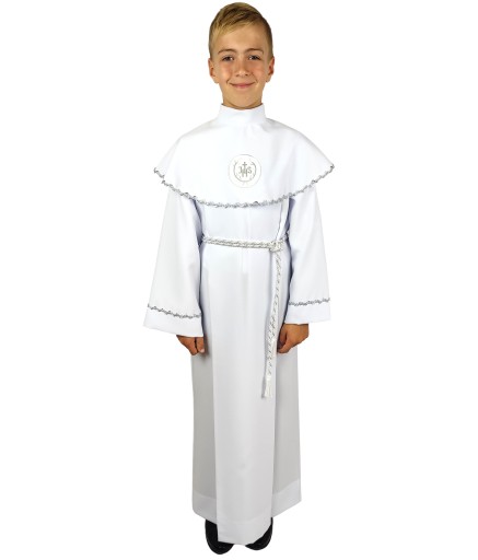 Polecamy albę uszytą z należytą starannością z delikatnej, białej tkaniny. Odpowiednia zarówno dla chłopca, jak i dla dziewczynki.