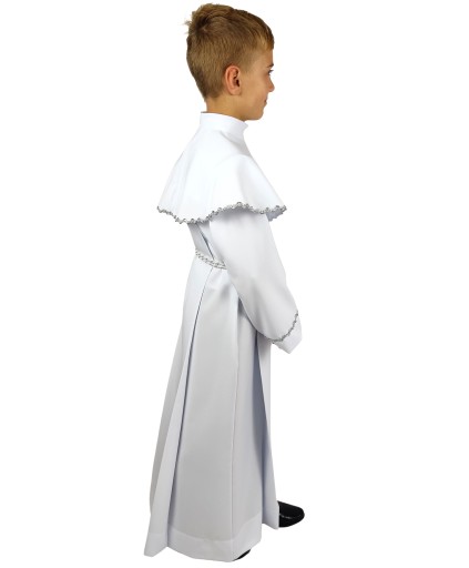 Polecamy albę uszytą z należytą starannością z delikatnej, białej tkaniny. Odpowiednia zarówno dla chłopca, jak i dla dziewczynki.
