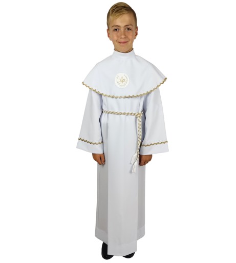 Polecamy albę uszytą z należytą starannością z delikatnej, białej tkaniny. Odpowiednia zarówno dla chłopca, jak i dla dziewczynki.