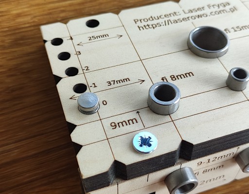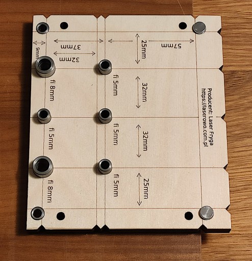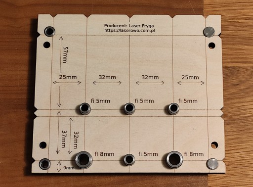 Uwaga: Produkt jest złożony i wstępnie skalibrowany. Szablon pozwala na regulację położenia małej płytki w stosunku do dużej. Przed użyciem na docelowym materiale zaleca się przeprowadzenie prób i ustawienie szablonu według własnych wymagań.