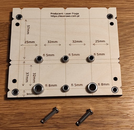 Wszystkie otwory pod wiertło wzmocnione tulejkami ze stali narzędziowej utwardzanej (55 HRC) o wysokości 18mm i 12mm. Otwory pozycjonowane w połowie grubości płyty.
